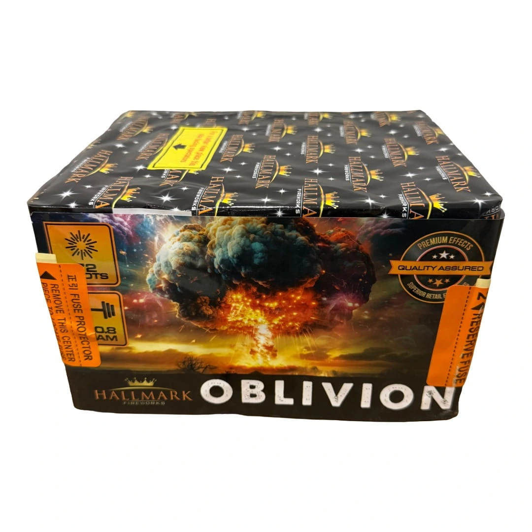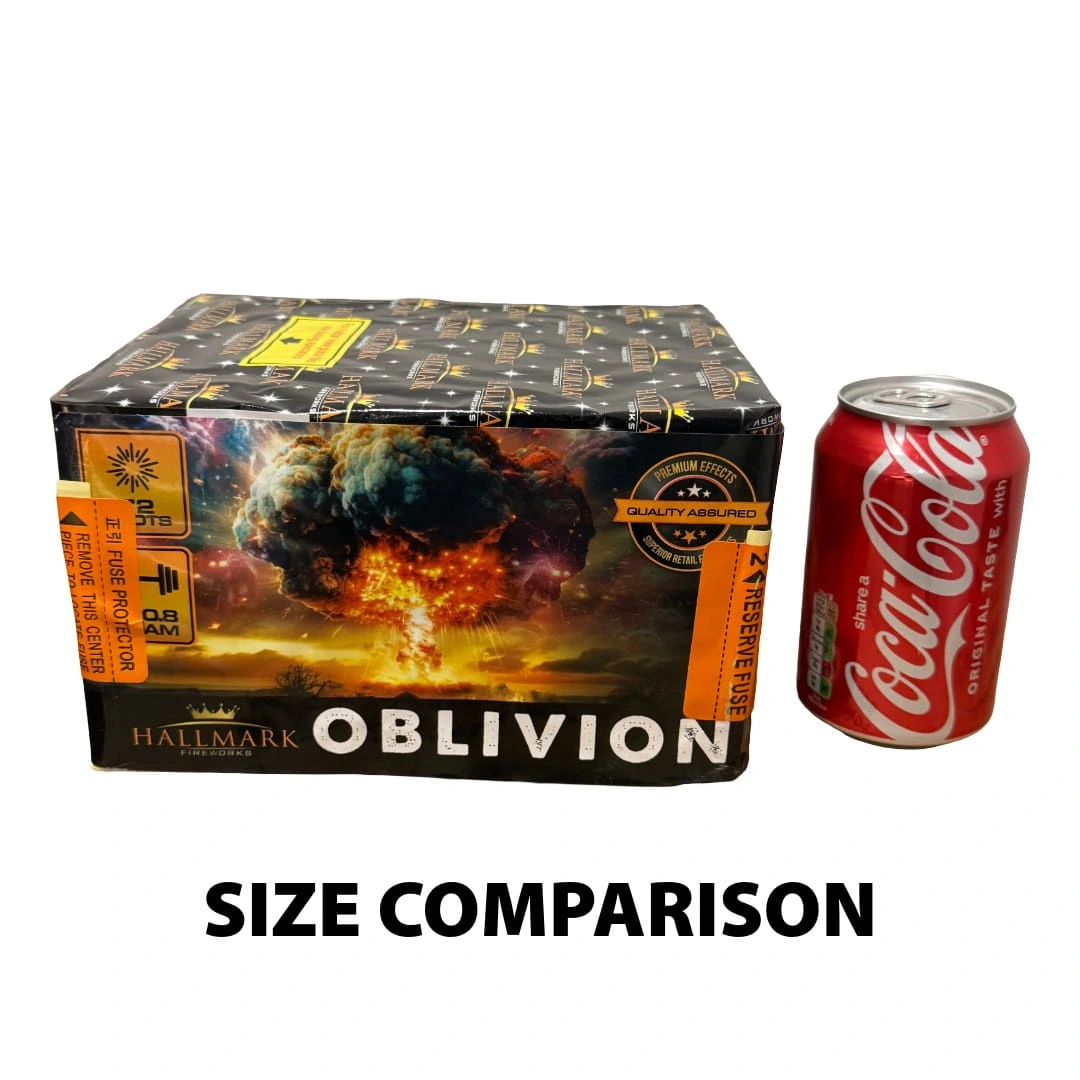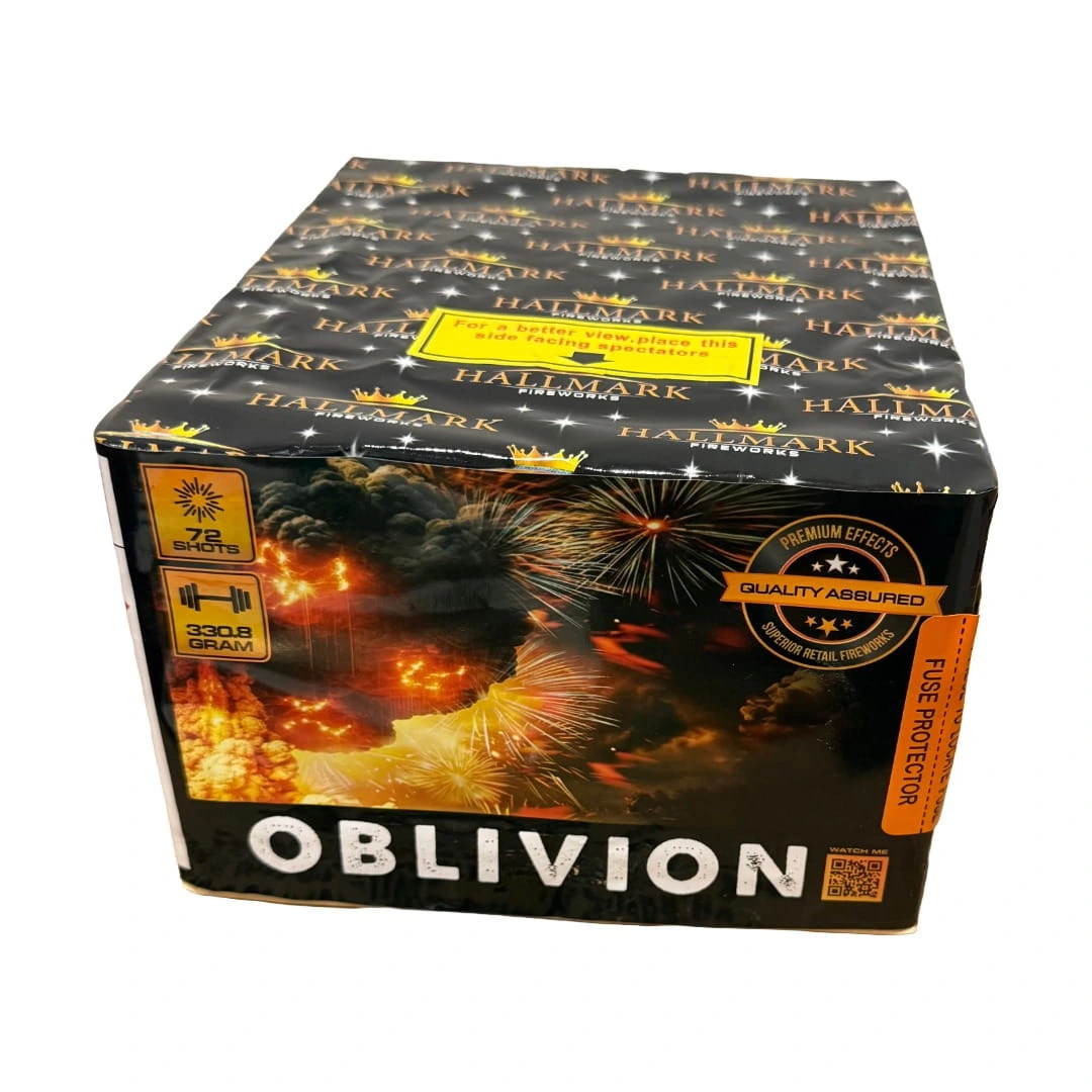 Prepare for an explosive display with Oblivion by Hallmark Fireworks! This dynamic compound features 72 shots of pure excitement, showcasing crackling tails, colourful stars, and a variety of other captivating effects. With a weight of 330 grams, Oblivion promises a thrilling fireworks experience that will leave spectators in awe
